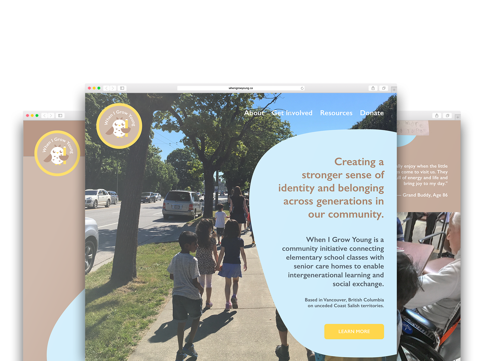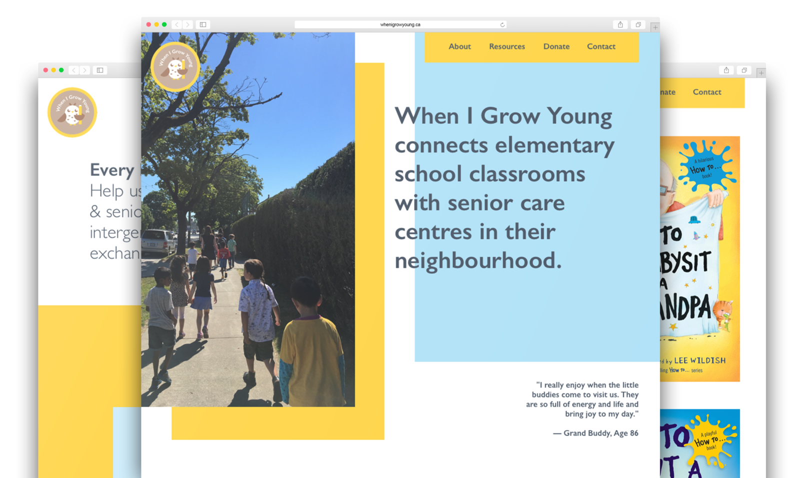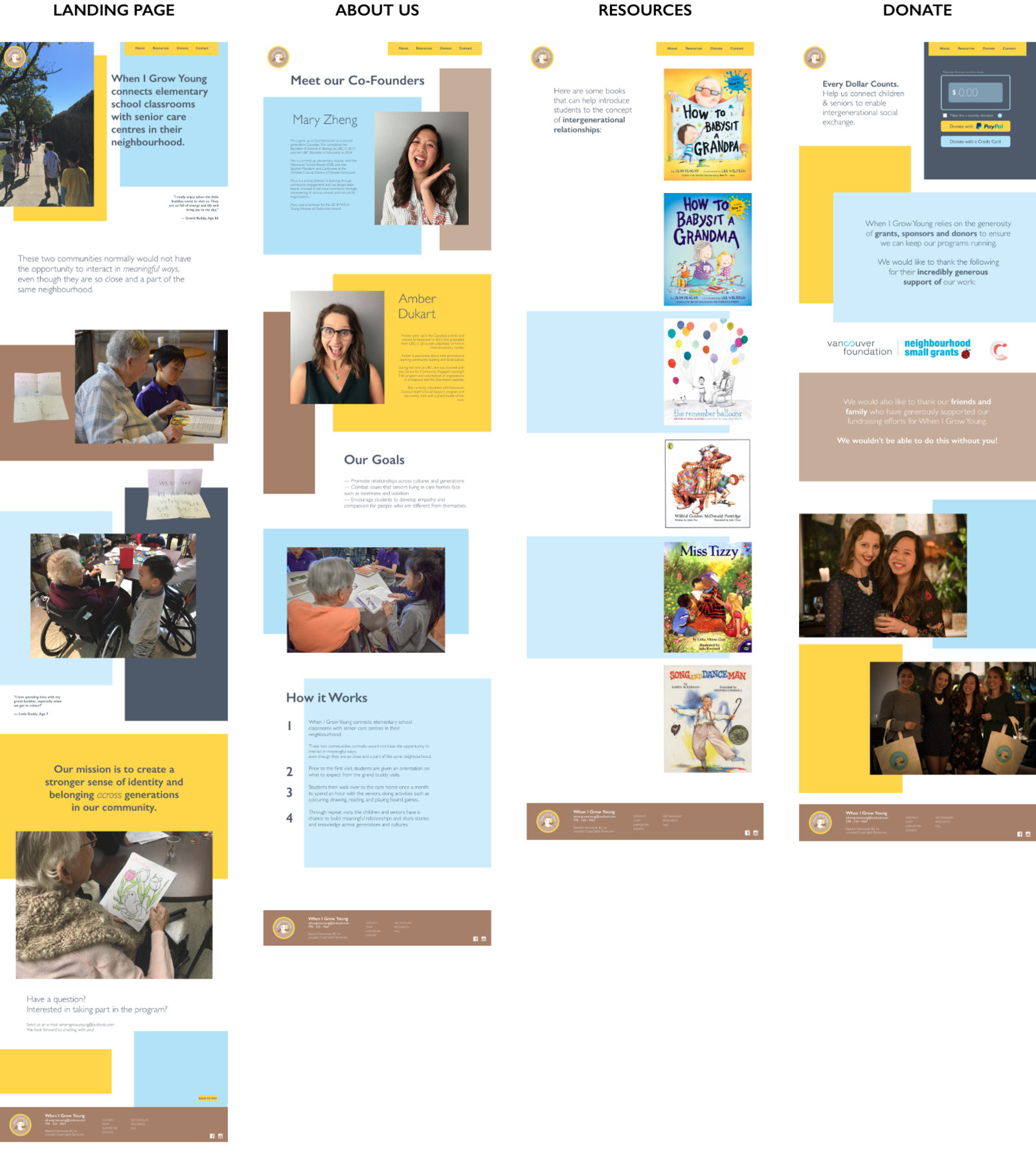 The homepage focuses on making an emotional connection with the reader and showcases reflections from little buddies and grand buddies in the program. The handwritten reflections from little buddies were some of my favourite outcomes from