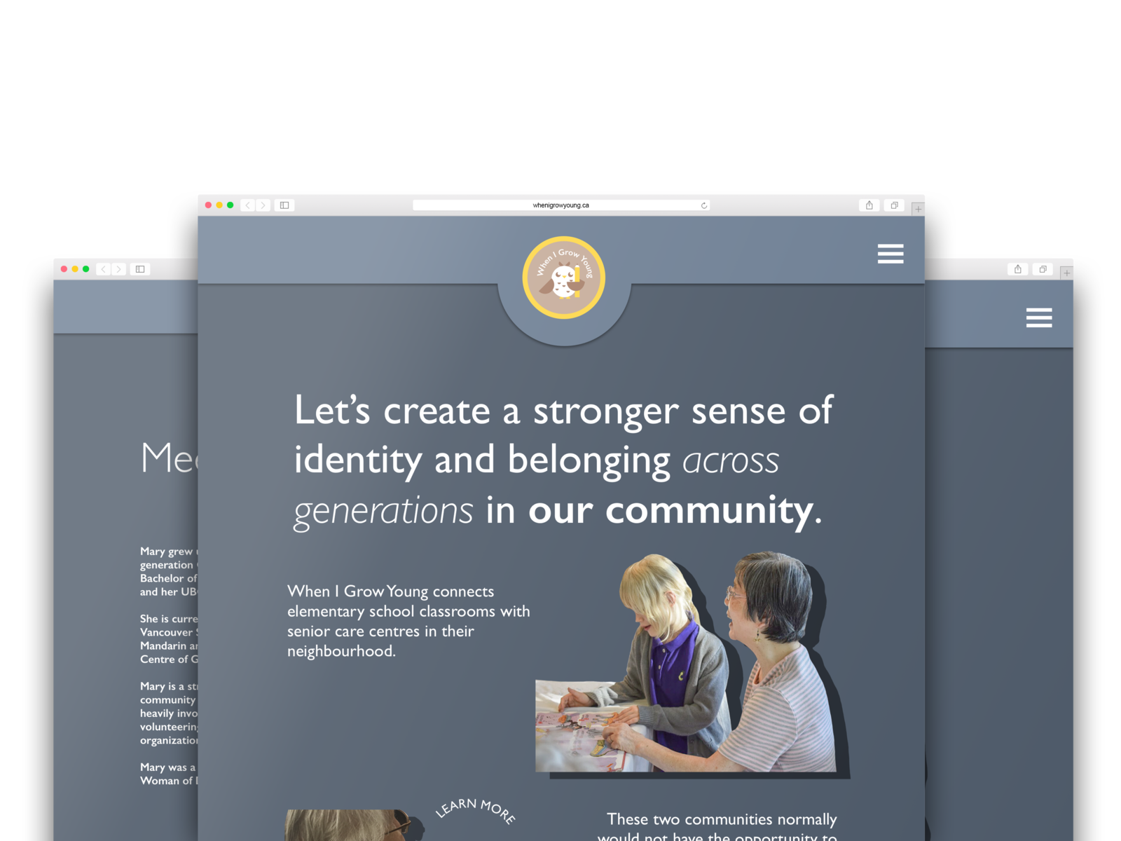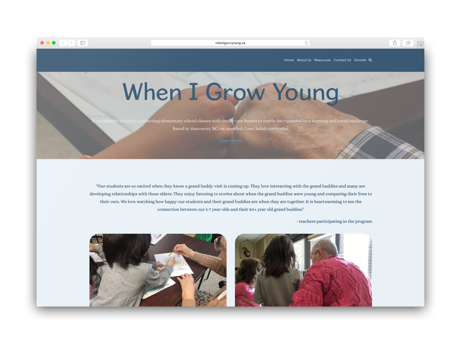 When I Grow Young is a community initiative connecting elementary school classes with senior care homes to enable intergenerational learning and social exchange.